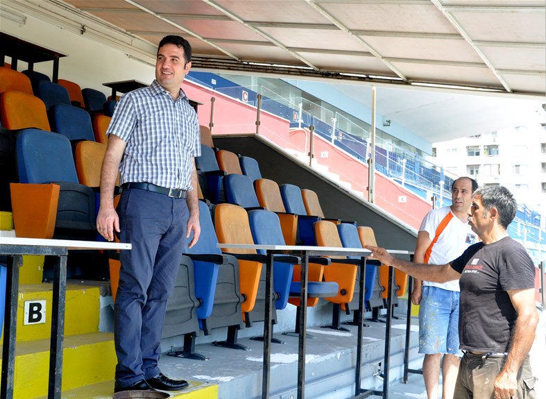 "Futbol karşılaşmalarına yaklaşık 3 ay kadar ara verildi. Bu zaman içinde çimlerin periyodik bakımı, yabani otların temizlenmesi ve ilaçlanması, kırılan koltukların yenilenmesi ve onarılması, takımların, hakemlerin soyunma odaları, duşlar, tuvaletlerin bakım ve onarımları tamamlandı. Ayrıca, boya badana yapıldı. Yeni ilk yardım odası yapıldı. Seyircilerin stada daha rahat ve güvenli girmesi için 5'li bariyerler yerleştirildi. Turnike ve gişelerin bakım, onarım ve eksikleri giderildi. Basın tribünün eksikleri tamamlandı. Elektrik ve su tesisatları yenilendi. Başka anlamda, stadın tüm eksikleri giderilerek sezona hazır hale getirildi."