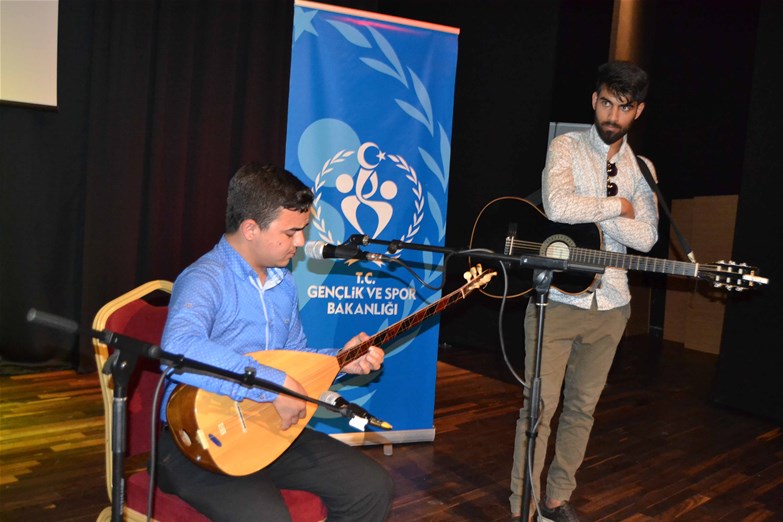 Program aralarında Gönüllü gençlerden Sefa Güçlü bağlamasıyla tellere ses verirken Yunus Emre Avcılar'ın gitarıyla çaldığı ve söylediği şarkılarla programa renk kattı.