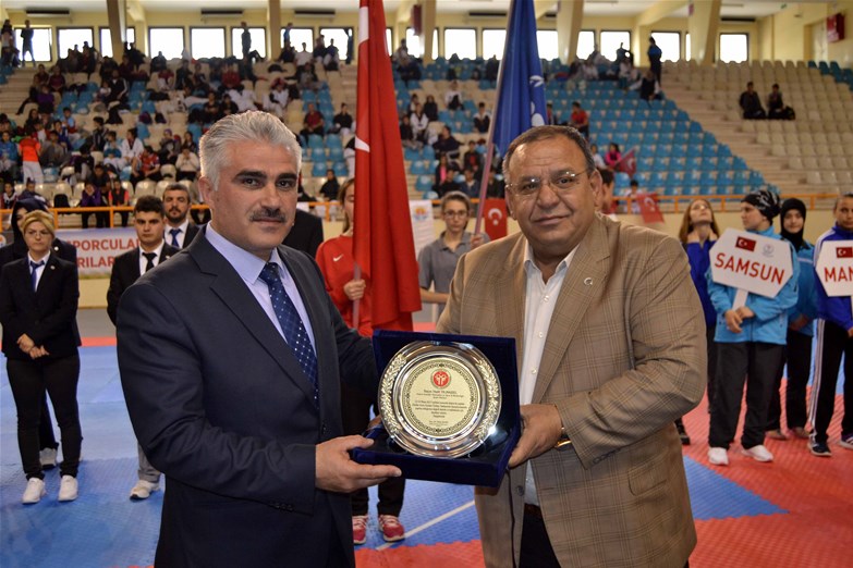 Ayrıca müsabaka öncesi Tekvando Federasyonu Başkan Vekili ve Genel Koordinatörü Ramazan Erçin tarafından Gençlik Hizmetleri ve Spor İl Müdür Abdulkadir Ataşbak ile Spor Şube Müdürü Halit Yılmazel'e müsabakalarda göstermiş oldukları desteklerden dolayı plaket takdim edildi.