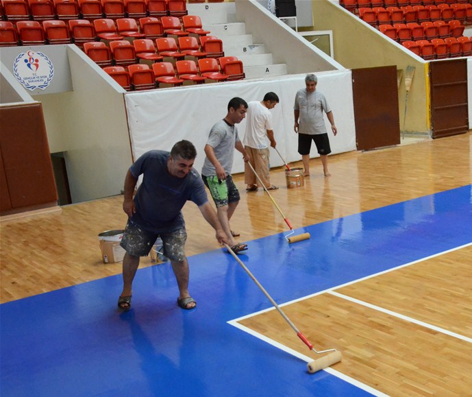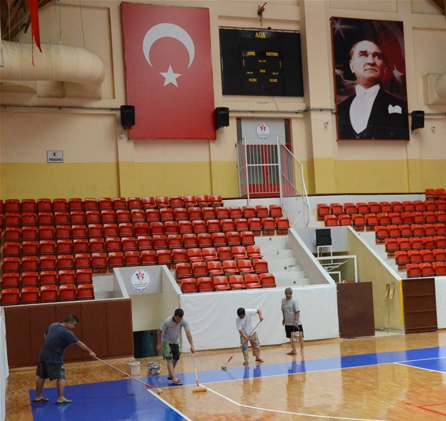 Hadi, her yıl olduğu gibi, ölü sezonda Menderes Spor Salonu’nun zeminin geçen yıl tamamen zımpara yapıldığını, bu yıl ise deforme olan çizgilerinin yeniden çizildiğini,boya ve cila yapıldığını, yıpranan koltukların değiştirileceğini veya onarılacağını kaydetti.