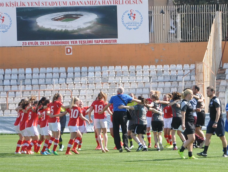 Adana’da 5 Ocak Fatih Terim Stadı’nda saygı duruşunun ardından 2 ülkenin milli marşı çalındı. Maçı İngiltere’den Sarah Garattt, Helen Conley, Türkiye’den Belgin Kumru yönetti . 4. hakem olarak Türkiye’den Neslihan Muratdağı görev yaptı.
